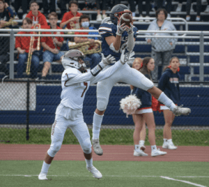 Frankie Provenzale makes a touchdown catch against Harrison on Oct. 23, 2021. The Eagles fell to the Huskies, eliminating them from playoff contention.