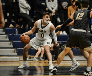 After scoring the first bucket of the game off the opening tipoff, Eastchester was unable to get into a rhythm in the early goings, and seemed poised to head into the second quarter with just four points until a buzzer-beating three-pointer cut the lead to 16-7. Eagles’ point guard Frankie Provenzale credited Nanuet’s physical toughness with disrupting Eastchester’s flow and said that his team needed to find answers after a rough first eight minutes.